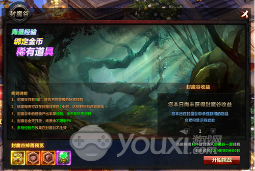 Ø 封魔谷为全天开放,可累计挂机2小时,场景中不限制PK。